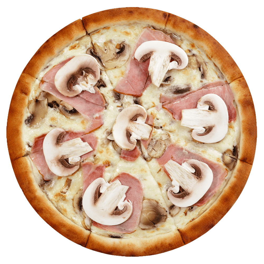Состав: тесто, соус "Грибной", моцарелла, карбонад, шампиньоны, соус грибной.