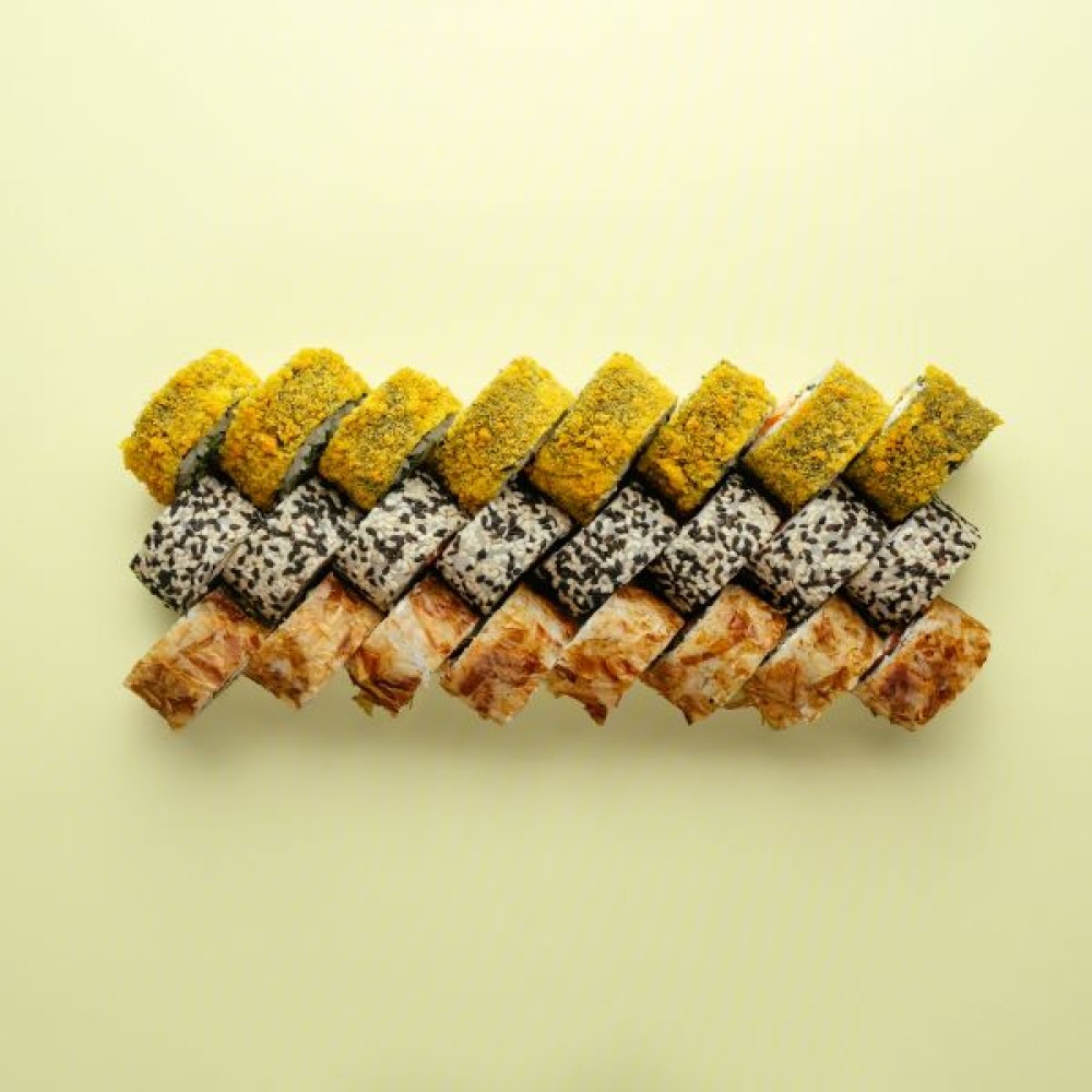 Состав: ролл "Бонито", ролл "Темпура с форелью", ролл "Аляска".