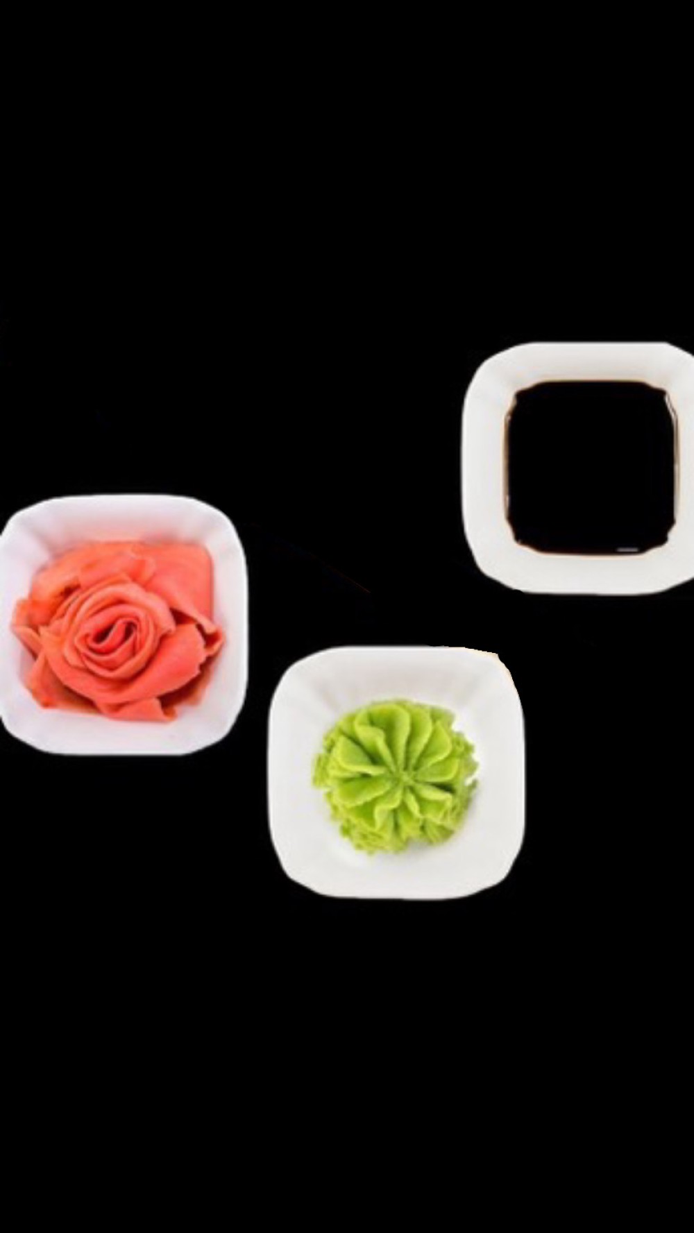 Состав: соевый соус 40г, имбирь 30г, васаби 10г.