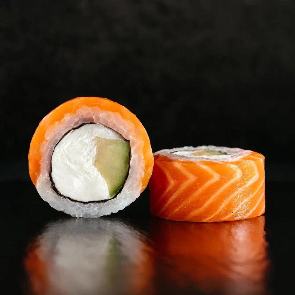 Состав: рис, нори, форель, сыр творожный, авокадо.