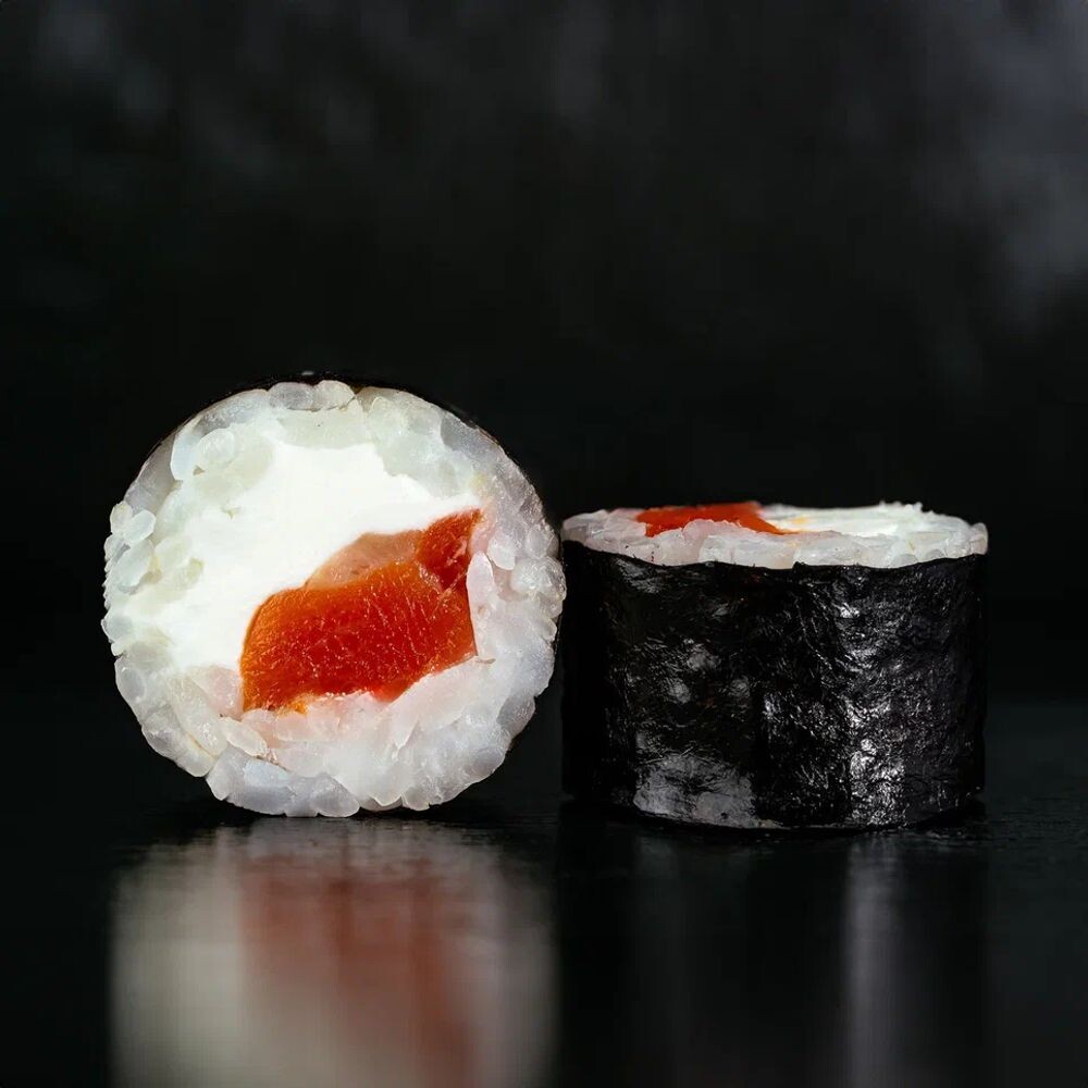 Состав: рис, нори, форель подкопченная, сыр творожный.